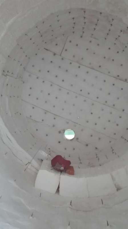 加熱罩燒嘴區(qū):此區(qū)域用比爐襯高一等級(jí)的陶瓷纖維模塊和陶瓷纖維毯。
